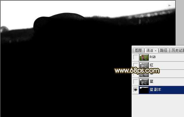 8、按住Ctrl + 鼠标左键点击通道面板,蓝副本通道缩略图载入选区;点RGB通道返回图层面板,新建一个图层,用油漆桶工具填充白色。取消选区后把背景副本图层删除,效果如下图。