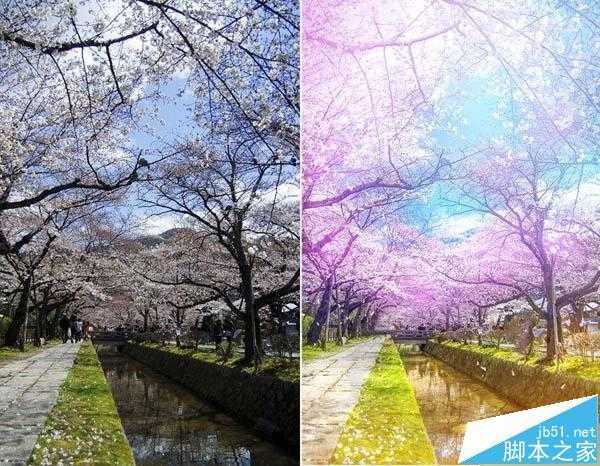 加工完之后的效果如下(除了左上角,其它部位的樱花也都用笔刷调整过)。