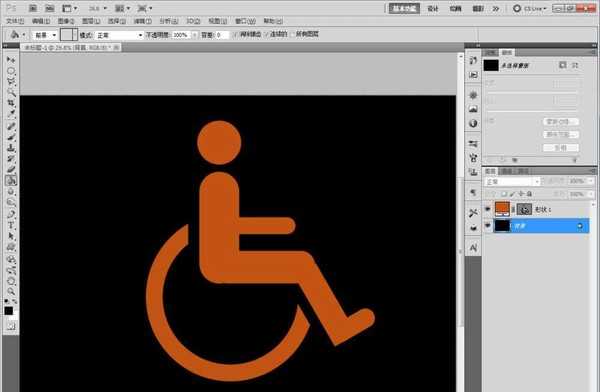 4、选择形状选项栏中的轮椅图案,绘制出轮椅图案。