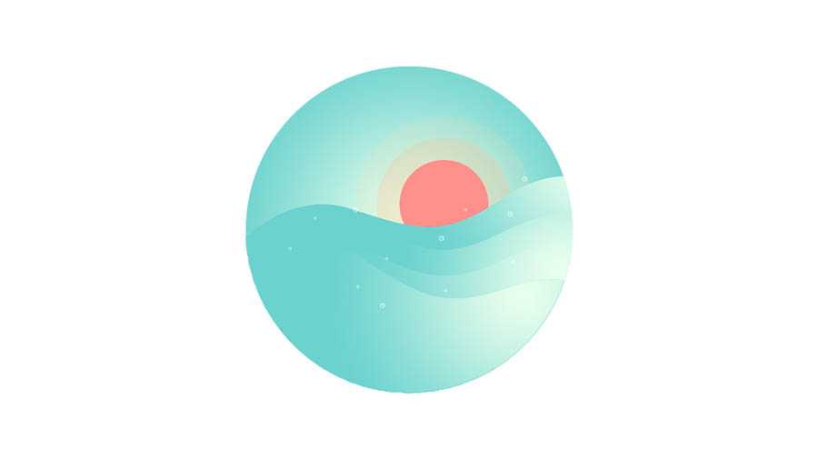 扁平化的插画无一不是从基础形开始,保持基础形的简洁是非常重要的一步。那我们就需要将草图进行拆分,其实这副插画的基础形就只有两个:圆形和波浪形。接下来我们就要考虑怎样得到这两个形状,以及这两个形状应该怎么组合成画面。