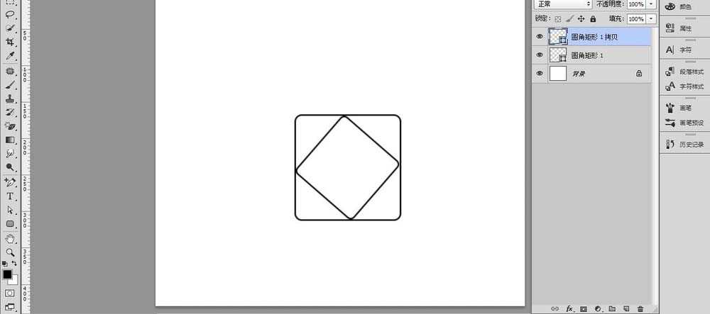 2、选中圆角矩形工具,用圆角矩形工具在文档中画一个正圆角,颜色为黑色,