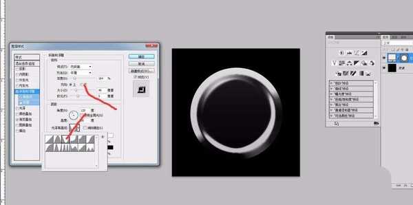 4、然后打开斜面浮雕效果,给圆形增加立体,选择内斜面。参数的设置根据自己的 喜好来调整。要注意的是,将全局光的选项去掉,不要勾选。然后角度选择120度,从上到下照下来的光。
