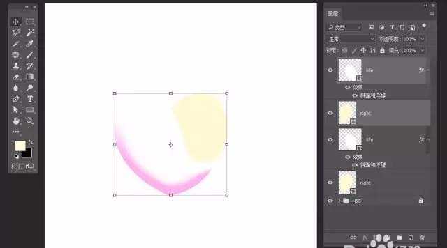 5、选择左边形状图层,添加图层样式——斜面与浮雕