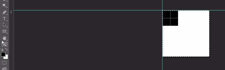 2、新建一个图层。点击铅笔工具。铅笔大小为1像素。前景色为黑色。默认颜色就可以。然后在页面左上角点击四下。然后如图绘制。可以拖拉辅助线绘制。