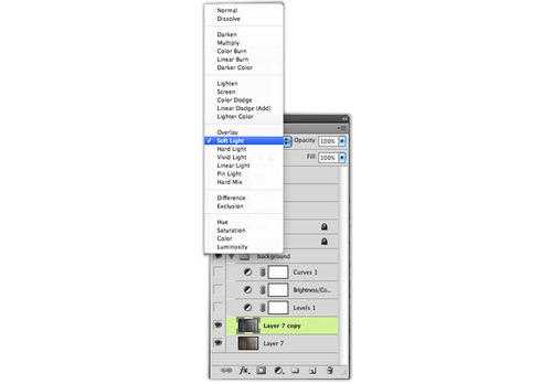 十二、之后把图层混合模式调整为柔光模式。
