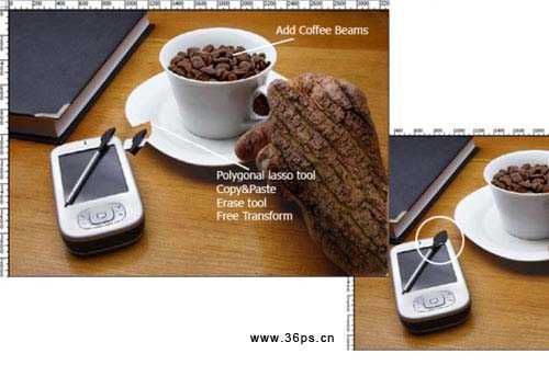 四、找一张咖啡豆图片,复制一部分到杯子上如下图。