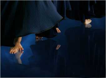六、给MM添加倒影。将四个MM图层合并,合并了的图层命名为四MM,并复制一个这个图层(命名四MM倒影)。执行,编辑---变换---垂直翻转,之后将翻转过的图片拖动到四MM脚下,注意,拖动的时候请按住shift键,以保证位置对应。调节四MM倒影图层的不透明度,降低到20%左右。根据你图片色彩决定。再使用橡皮擦工具,将四MM倒影图层的底部以及周围进行适当删除,让效果更加接近倒影效果。 提示:这里你不一定使用橡皮擦工具,你可以使用渐变色来实现,用从透明到蓝色背景色的渐变来填充四MM倒影的选区,然后降低渐变图层的透明度配合四MM倒影。具体请自行研究。