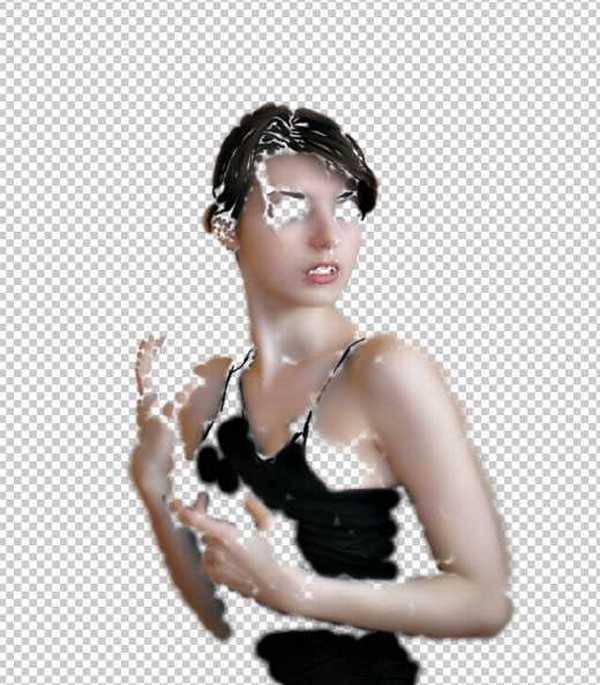 现在在工具面板,选择画笔工具很软轮刷硬度(0%)。 画笔的不透明度设置为20 - 40%的不透明度。 接下来,用黑色颜色,眼睛周围,嘴唇、鼻子和头发部分位置擦拭。