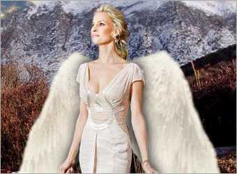 6、在人物层下方创建新图层,将前景色设为白色,导入天使翅膀,绘制如下效果。