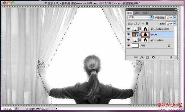 9.1 复制女孩图层,放到墙壁层的上面。然后图像/调整/去色。