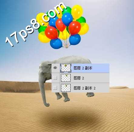 首先准备以下3个图片,大象、气球和沙漠背景。