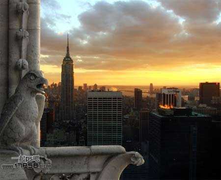 添加4个调整层修饰阳台,渐变映射图层模式强光,不透明度19%,其实设置默认。