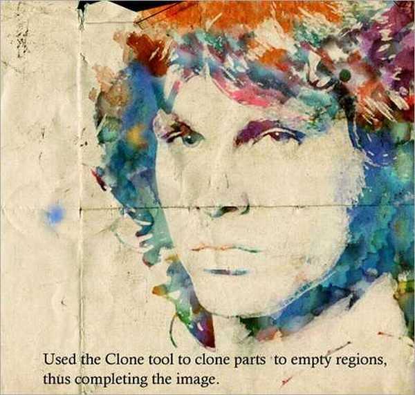 首先,我们在RGB模式下建立一个1920 X1200px的画布,然后我找到一张吉姆 莫里森的图片(你可以选择用你喜欢的照片或者是你自己的照片)。复制、粘贴图片到你所建立的画布中,使用变换工具按住shift对图片进行缩放,使它大小和画布相协调。这样使图片变换后的分辨率保持不变,并且不会有拉伸变形的效果。