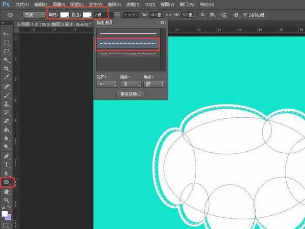 使用椭圆工具绘制几个圆形,将其拼接在一起(任意拼接,你的云朵你做主)