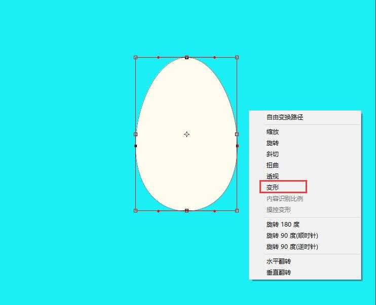 按住ctrl+t进入自由变换,点击右键---变形,然后调整边缘,使其更像鸡蛋