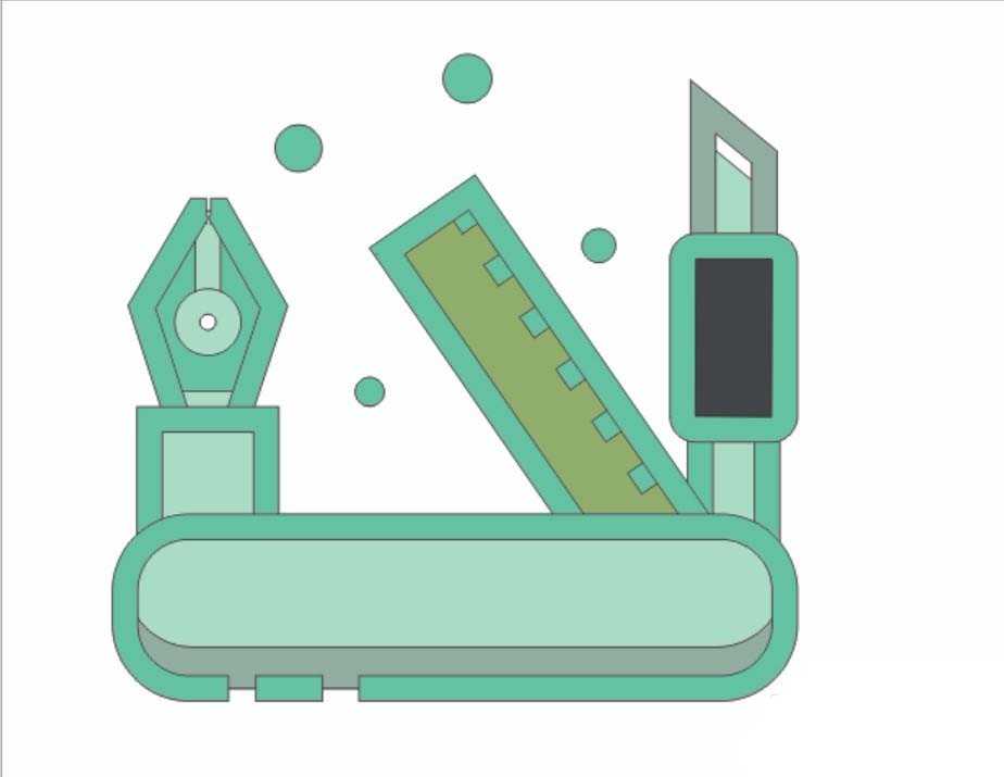 3、再依次绘制出直尺、美工刀的路径,这些元素都有着自己的多层结构,细节非常的丰富。
