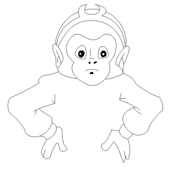 11、最后使用钢笔工具画出孙悟空的身体,如图所示: