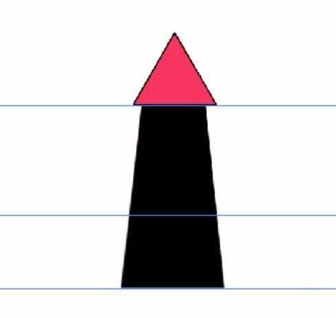 1、三角形的形状绘制出来,再用四边形来绘制这个火箭的中间部分,注意两个部分的结合良好。