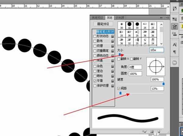 12、这样一个串珠效果就出现了,当然,画笔可以设成其他颜色,就会是其他颜色的串珠。