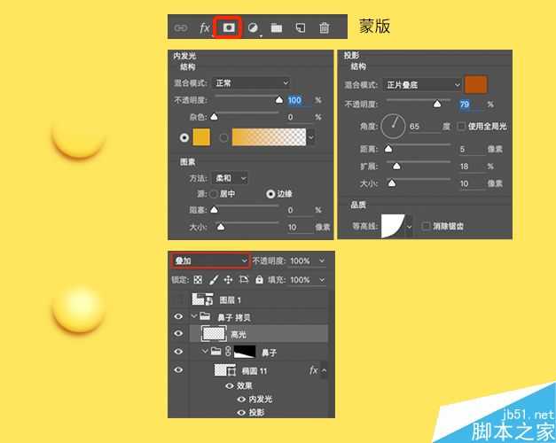 -- 鼻子超简单,就是一个小球~用椭圆工具随意一拖~(为了自然过渡,用到了蒙版)~如下图所示