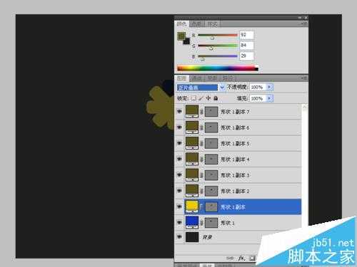 7、使用相同的方法,依次将其他7个图层进行修改,重复步骤6,修改成不同的颜色。