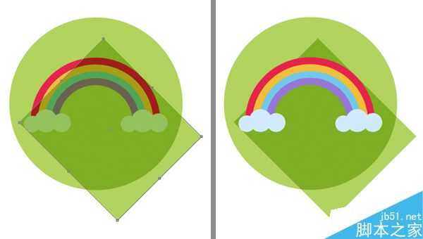 把图标的底色和阴影的颜色都调的浅一点。 我们的扁平化彩虹图标这就做好了! 下面我们移步下一个图标。