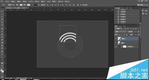 3、如果你想在一个图层上做一个圆环形状的话,先选择形状工具,必须选一个选项(合并,减去,相交,重叠),再画形状,才能实现在一个图层上画多个形状。