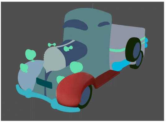 以红色部分为例,先添一个固有色,根据光影关系,逐步细化。边缘模糊画笔和边缘清晰画笔根据需要配合使用。