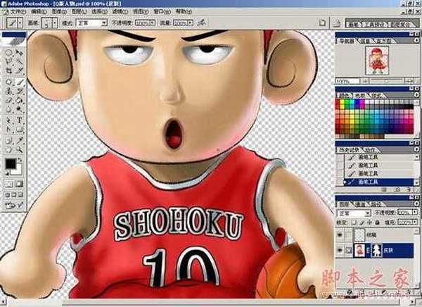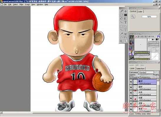 本文用Photoshop和OpenCanvas绘制卡通动漫人物——Q版樱木花道,主要包括线稿描绘与填色两大步骤。