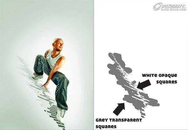 用与之前相同的方法做一个透明蒙版,用50%的灰遮盖透明方块。(图34)