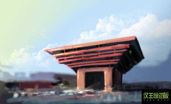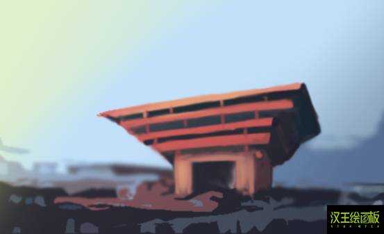 利用模糊工具结合汉王绘画板细腻的表现力将前景和远景的效果拉开。