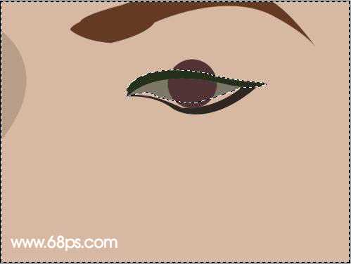 1、建立背景图层,填充淡黄色,新建一个图层,用钢笔工具勾出眼睛的轮廓,转为选区,按Ctrl + Alt + D 羽化1个像素,然后填充颜色:#7F7665。