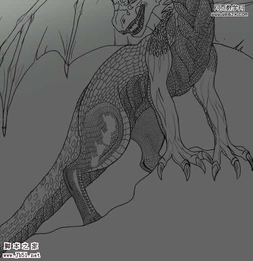3、然后创建一个新图层,用画笔绘制一个素描龙,这个过程非常复杂的,在这里我大概用了1个小时的时间。