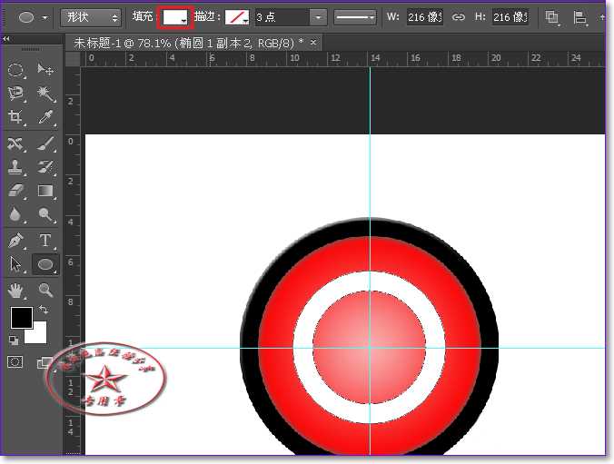 4、填充红色,并且设置一个径向渐变,描边设置为无。