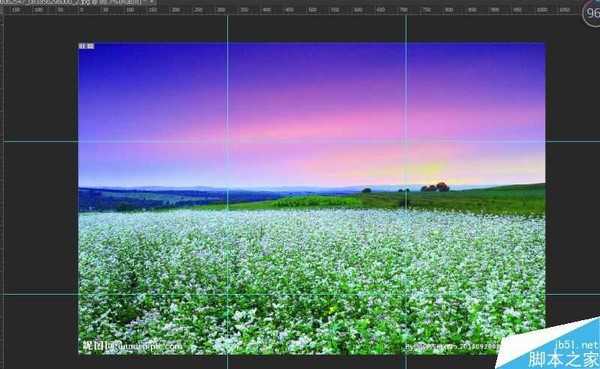 2、然后用移动工具将参考线放到图片上,建立切片选区;