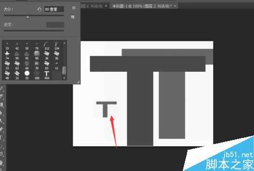第二步:在图层中随意画出自己想要的画笔形状。比如我想在使用画笔时,画笔是一个T字形状。就在图层画一个T字形状。