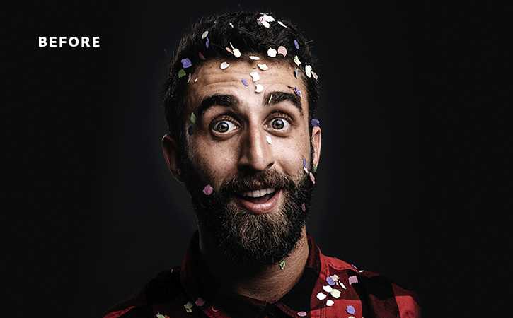 这张修图前后的对比图,很明显的展示了通过调整人物的眼睛、嘴巴等来夸张他的表情。这些改变在老版的“液化”滤镜中,操作相对麻烦而且对“手残党”极为残忍,对不善于使用“冻结”功能来保护不需要液化区域的小伙伴来说,还会经常液化多了其他部位,显得很假,露馅。但是,有了Face-Aware功能,这一切都变得前所未有的简单,甚至准确。