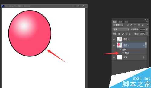 找到粉圆的层次名称为“图层1”,如图所示添加描边,描边大小适中,这里我调的是6。