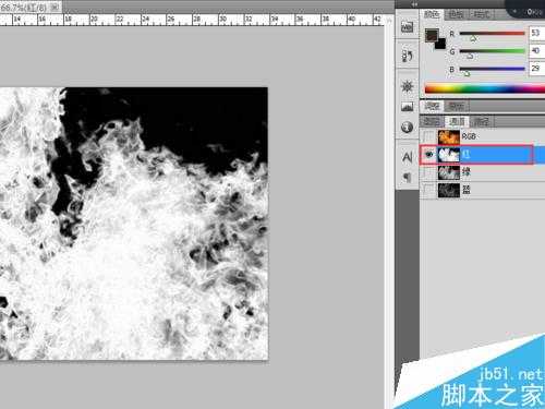 21、扣取复杂图层。之前说到给人物添加火焰皮肤,那么如何选取火焰的选区呢?总不能还用矩形选取工具吧。这里介绍一种通过通道来选区的方式,俗称通道抠图发,先看看要用哪些工具,如图所示打开一张火焰图片,在右边点选通道按钮,就会出现绿框中的四个通道。