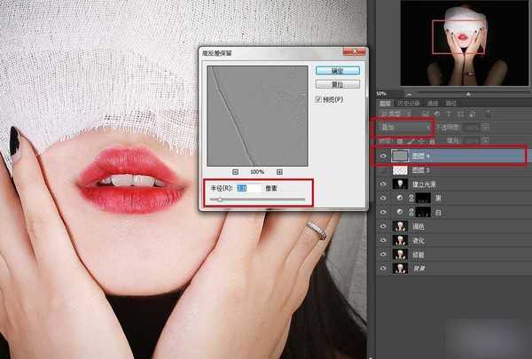 锐化不足的话可以ctrl+J复制高反差保留层,还不够就再复制复制复制复制………..