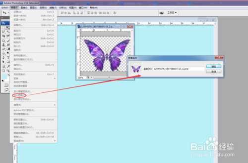 6、接着点击文件,弹出窗口中点击拷贝,粘贴,得到蝴蝶新图层1.把原来的蝴蝶图层删掉。(如下图)