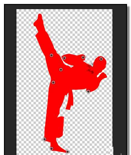 6、再按步骤2、步骤3、步骤4操作,把小腿部分再移到下方,如下图所示。然后,在操作界面的右上角点下“√”点一下,表示应用些变形。这时,人物上的钉消失;