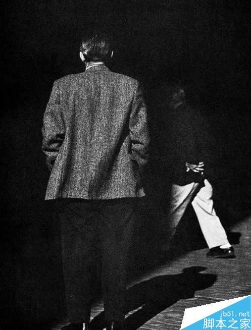 在摄影时,像运用光线一样去运用暗影,也会创造出神秘的画面。这幅照片是纽约摄影学院教授会成员杰里.赖斯拍摄的。在这里你可以看到一个运用光线的良好范例。两个人物都照明良好。其他东西实际上都在暗处。这幅照片给人一种象征性的信息。