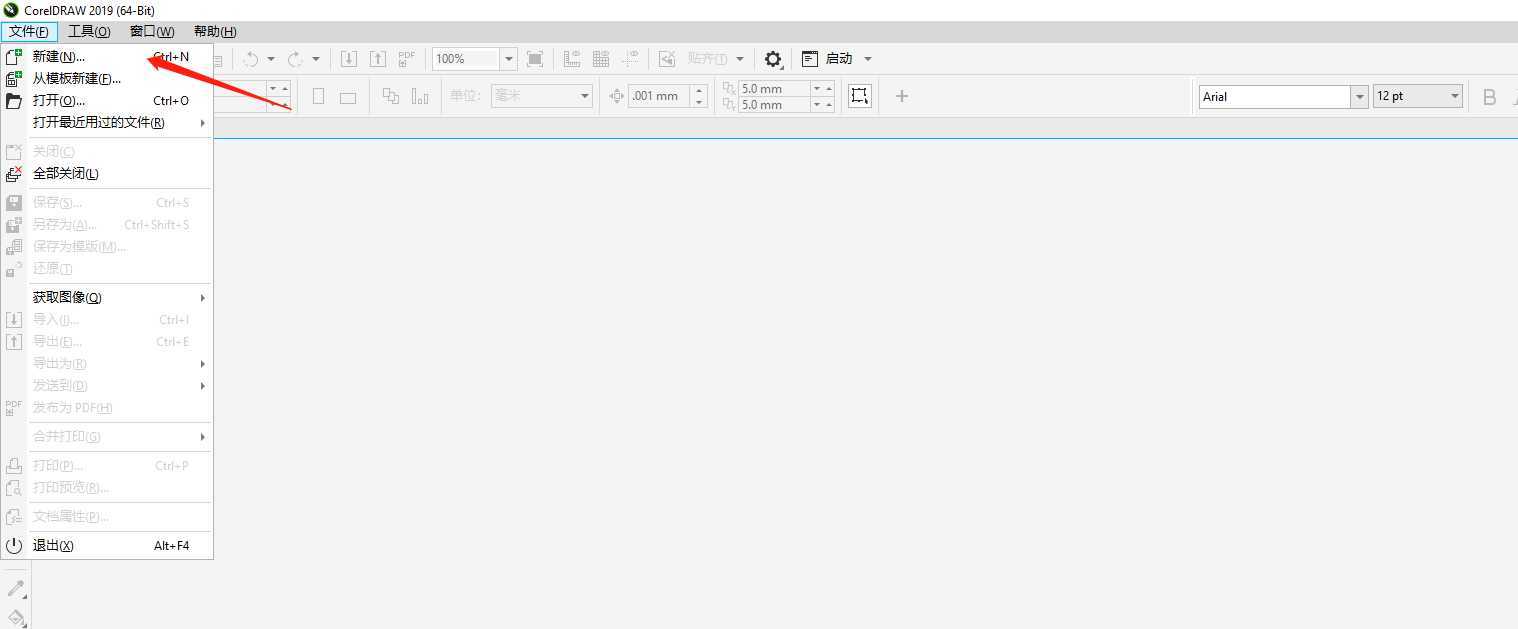 1、打开CorelDRAW 2019软件,点击 文件→ 新建