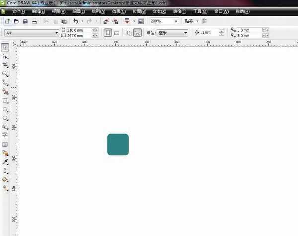 1、绘制一个圆角矩形。首先启动CorelDRAW软件,新建文件,绘制一个小的矩形,按住CTRL键可以绘制正方形,然后在属性栏中输入数值,变为圆角
