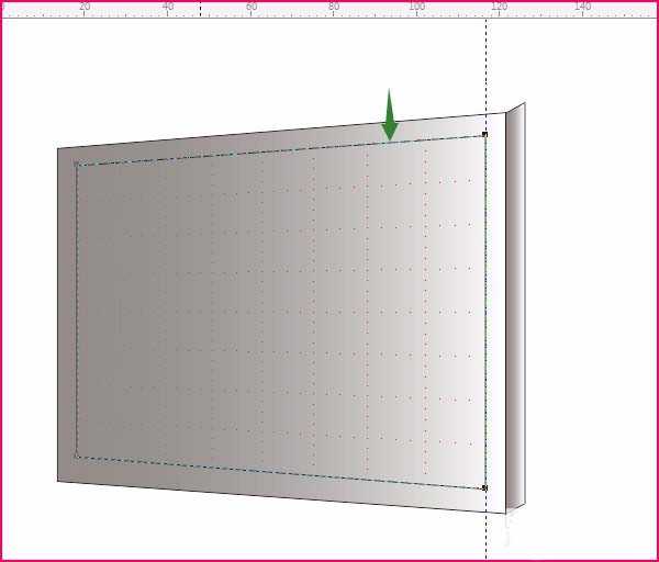 4、用“矩形工具”画出矩形,移动辅助线,单击“效果”菜单→增加透视,拉出透视效果,如图所示: