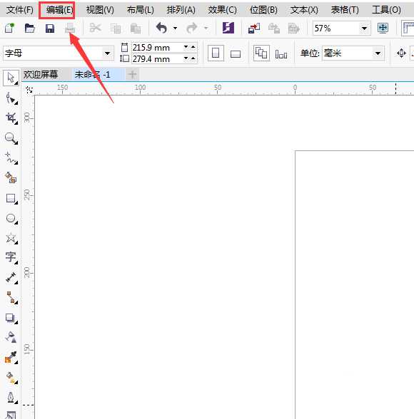 1、打开cdr这款软件,进入cdr的操作界面,如图所示:
