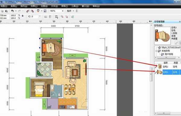 3、将我们想要的元素符号都调入到符合库中,很简单,直接将图画拖入到符号库栏目中。