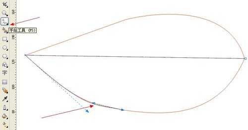 2、用形状工具来移动点,使得变成下面好像一只眼睛那样形状。