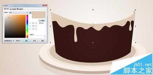 9、用贝塞尔工具绘制奶油形状,填充颜色放在上面,如图